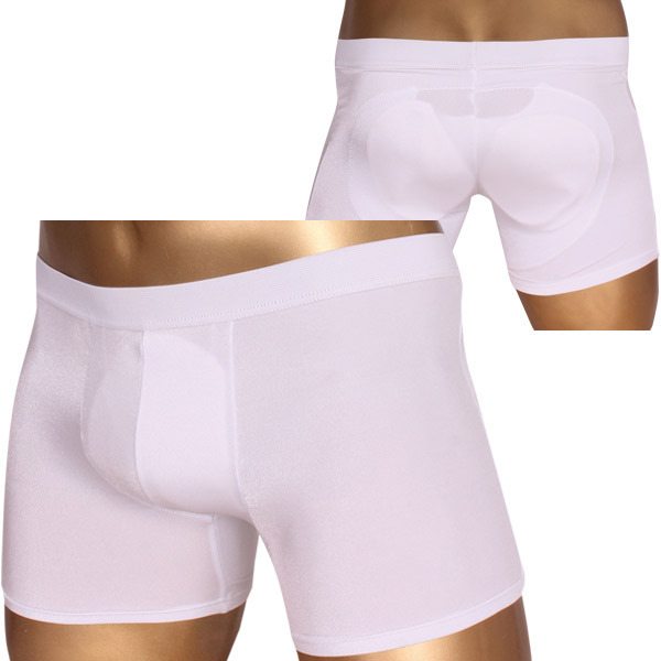 ●ボクサータイプのメンズショーツ●爽やかで精悍なホワイトカラー●立体縫製による自然な穿き心地●パッド内蔵で下半身をサポート●前面1枚&後面2枚の計3枚内蔵。