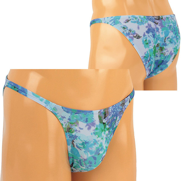 メンズ 2wayストレッチ花柄光沢プリントハーフバック ブルー