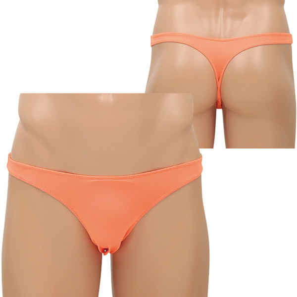 <EROX>シンプルスタイルでセクシーに魅せる大人のメンズランジェリーシリーズ!ネオンオレンジのローライズTバックショーツ「ピースメーカー」。