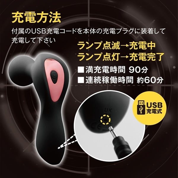 ■仕様:パッケージ:16.4×8.8×4.8cm 本体サイズ:11.5×6.6×3.7cm 【振動機能 USB充電式】 USB充電コード付属