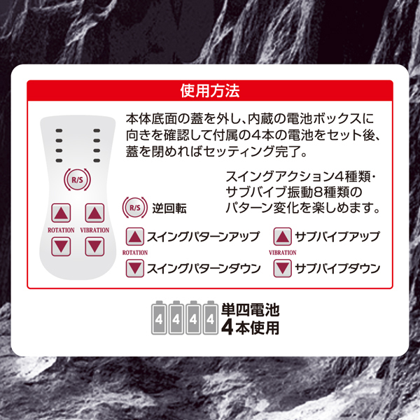 4連パールで膣内をゴリゴリと刺激しながら、子機の強力振動で絶頂へ導く!スイングアクション4種類×振動強弱8段階搭載。
