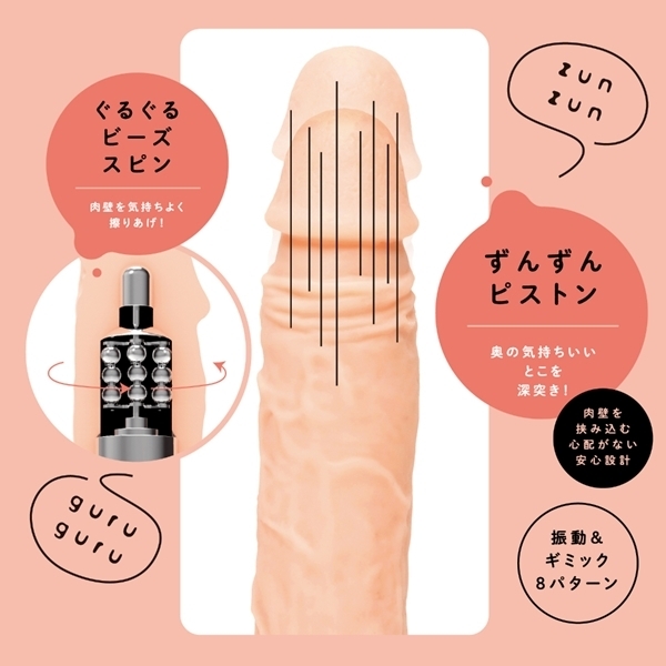 生感ビビッドディルド −ピストン&ビーズスピン−